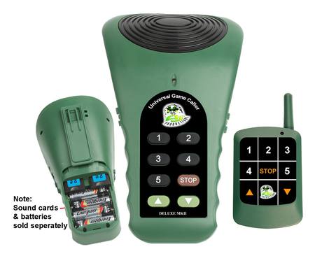 Product disclaimer: The new deluxe MKII model has 2 sound card slots and requires cards with the "Blue" sticker labels. MK1 sound cards are NOT compatible with the MKII Game Caller.