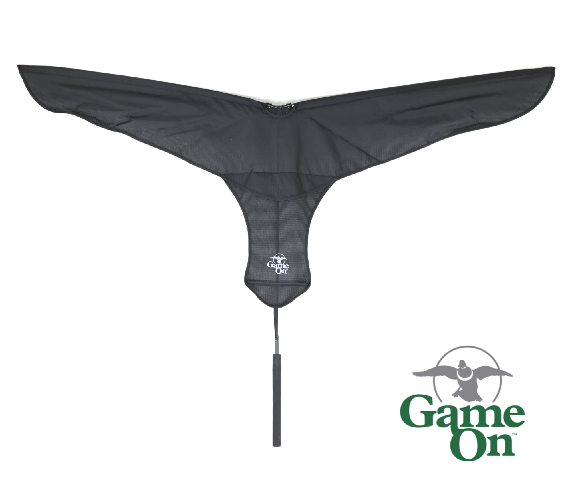 Command the attention of overhead geese into your firing zone with the Game On handheld goose flag. Nearby geese will be attracted to the wide-span flapping motion from the comfort of your mai mai. Simply fold out the wings, hold upwards and manually flap back and forth to create a realistic wing motion. Wings fold down for easy packing.