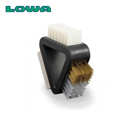 The LOWA TRIANGULAR BRUSH is a versatile brush for removing spots and soil from shoe leather. The brass and nylon bristles make quick work even of stubborn soil and can be used to roughen suede. The cleaning rubber removes stubborn rings, and the rubber crepe is ideal for finishing work. Ergonomically designed and easy to use, the LOWA Triangular Boot Cleaning Brush is ideal for cleaning and maintaining any one of LOWA's extensive range of boots. Each of the three sides has a different kind of brush on it; with one possessing a nylon and brass nap, another a rubber buff, and the final side, an eraser. Between these three distinct areas, the LOWA Triangular cleaning brush can be used to effortlessly remove mud, eliminate grease stains, wipe away dried dirt, and generally reinvigorate boots that have become dull and worn.