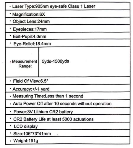 • 5 - 1500 yd measuring distance