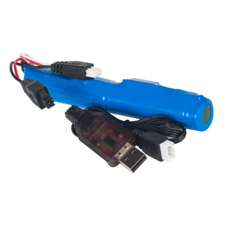 The SplatRBall® 7.4V 1800 mAh rechargeable battery is the ideal power source for any SplatRBall® blaster. This battery comes over 70% charged and ready for immediate action. Fully charged, this battery may provide over 5,000 shots before requiring to be recharged. A USB charging cable comes standard with the battery so you have everything you need for ours of SplatRBall® fun.